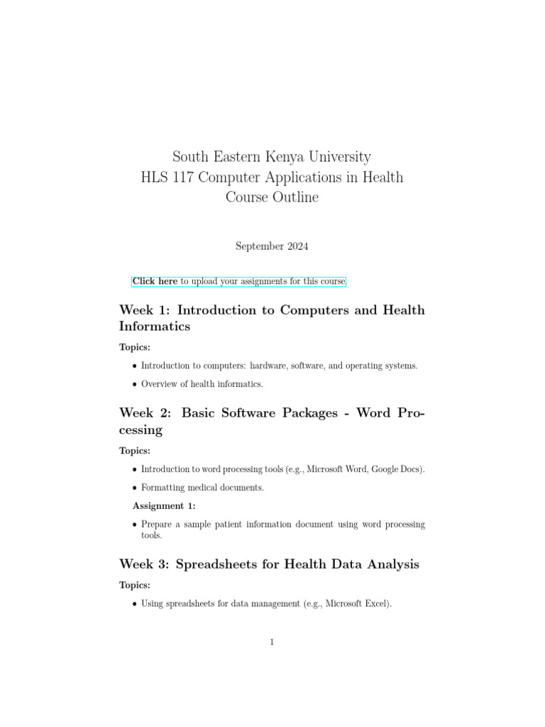 HLS 117 Computer Applications in Health Course Outline PDF