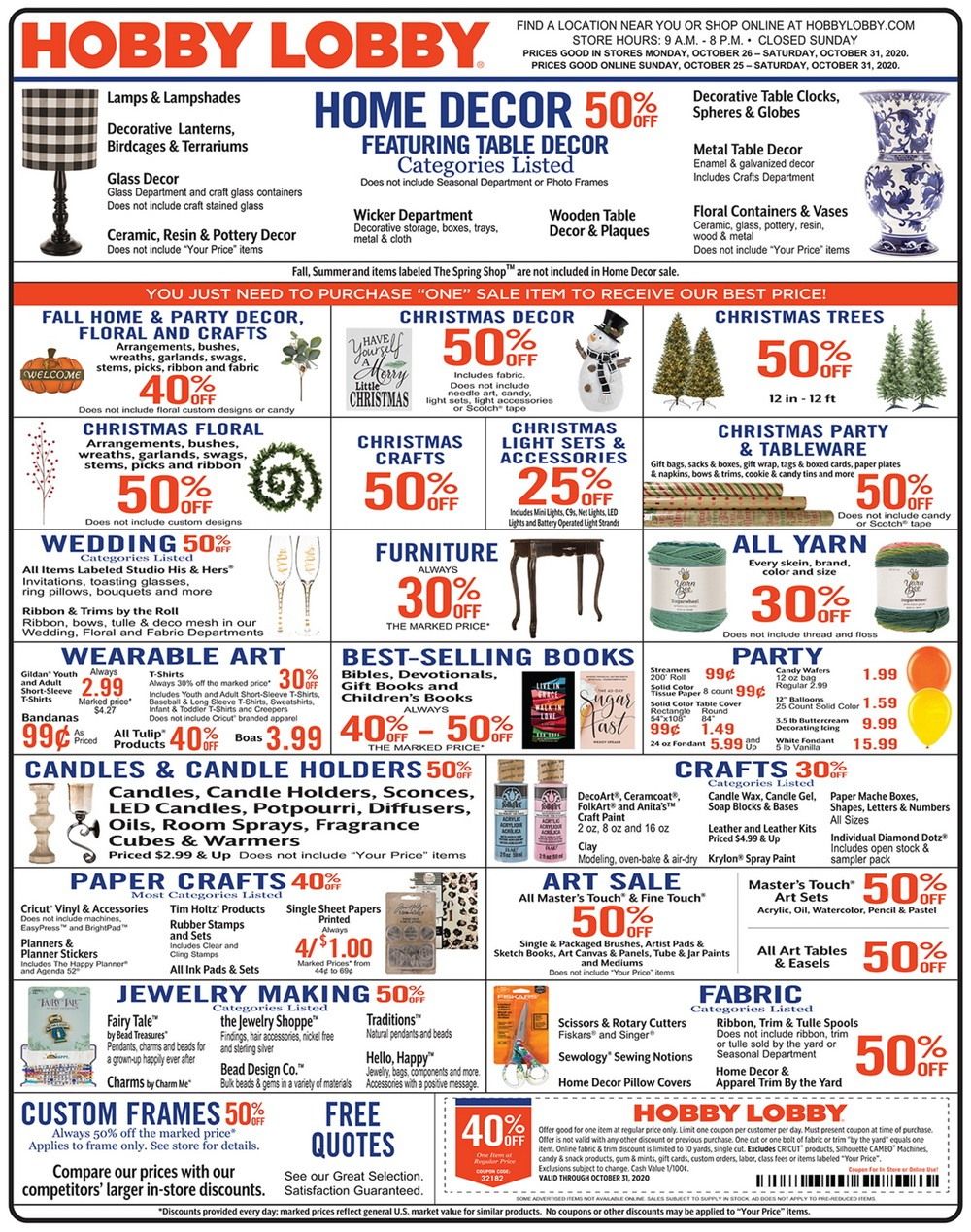Hobby Lobby Weekly Ad Oct 25 Oct 31, 2020
