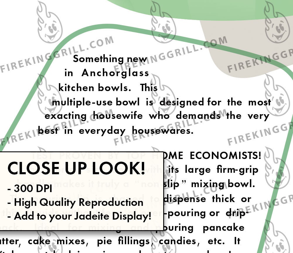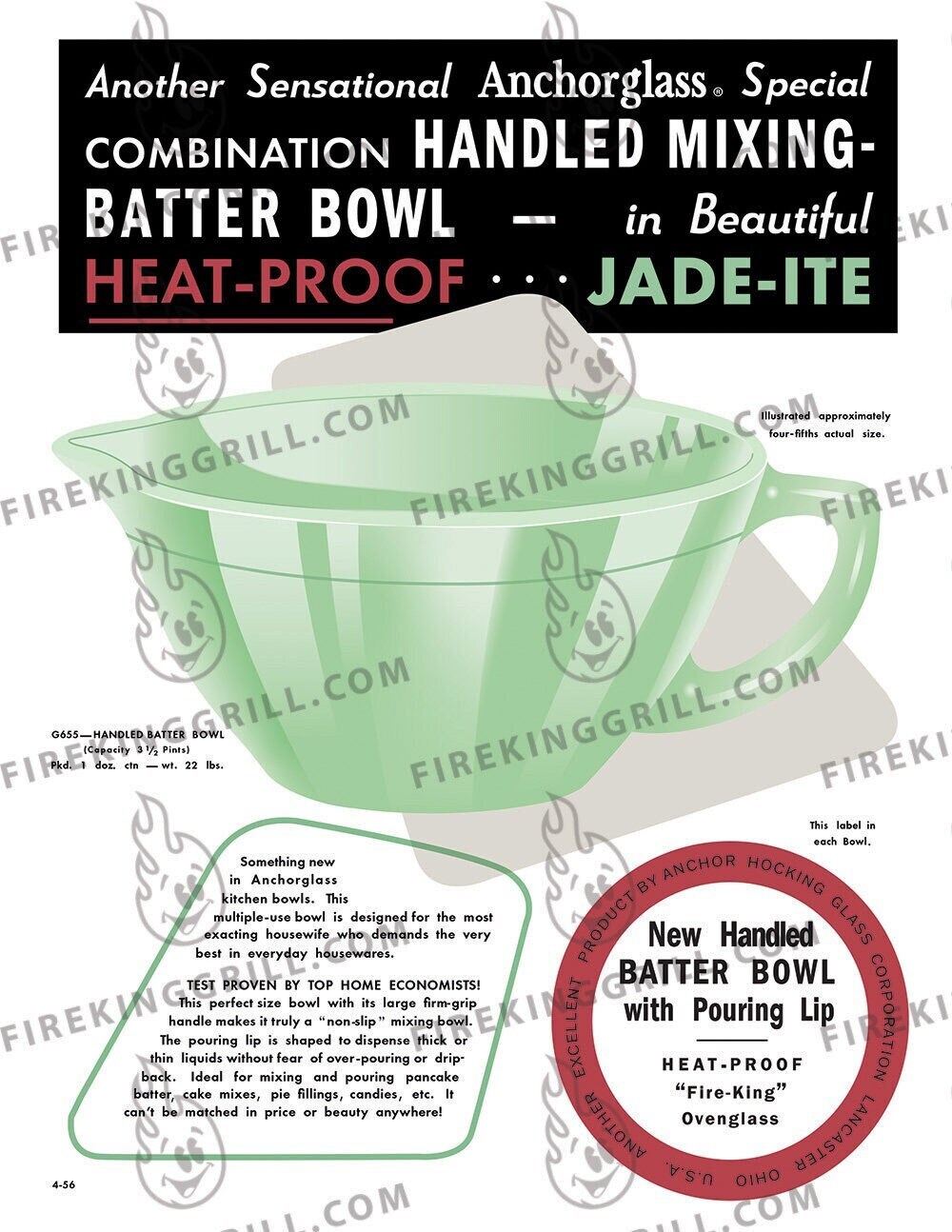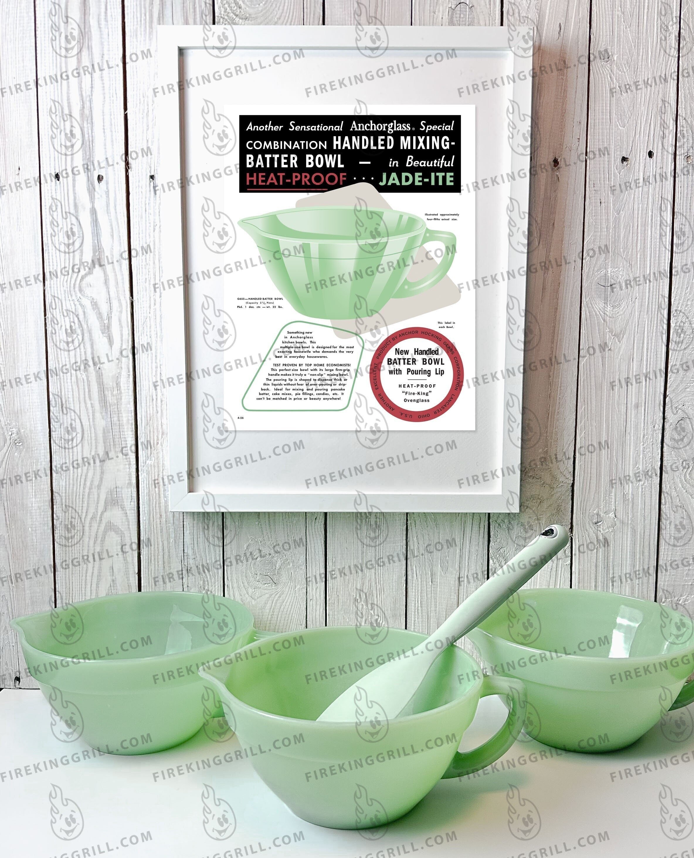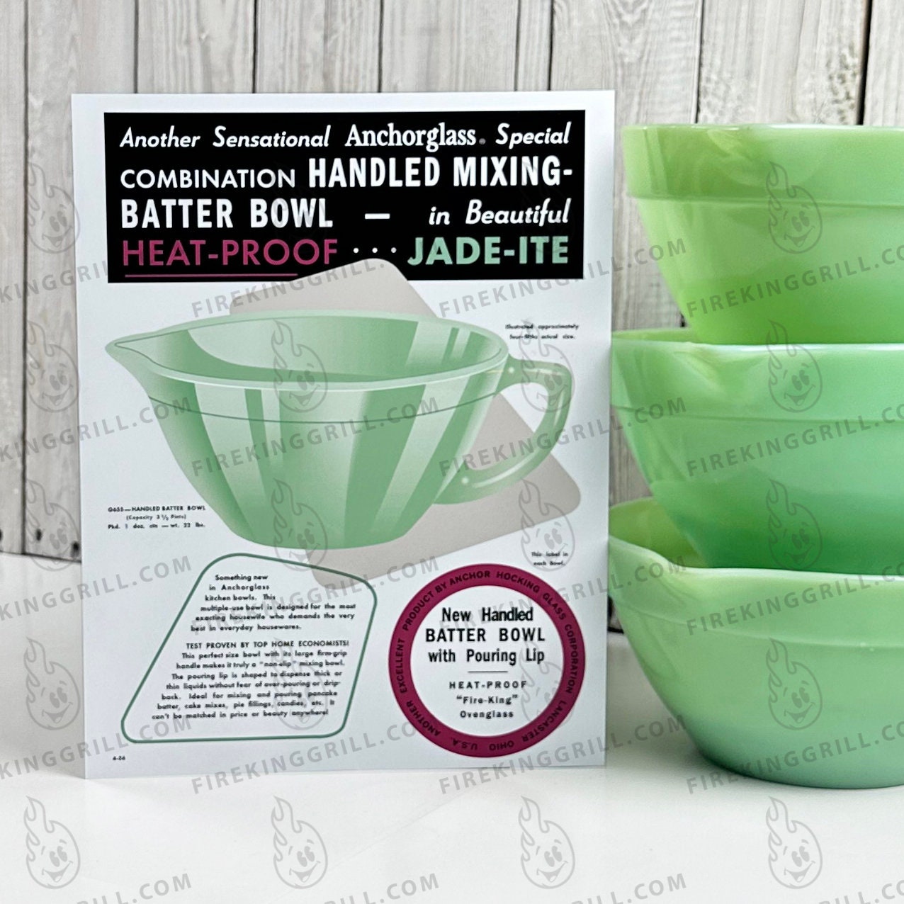 Fireking Jadeite Poster Batter Bowl Ad Depression Glass Vintage