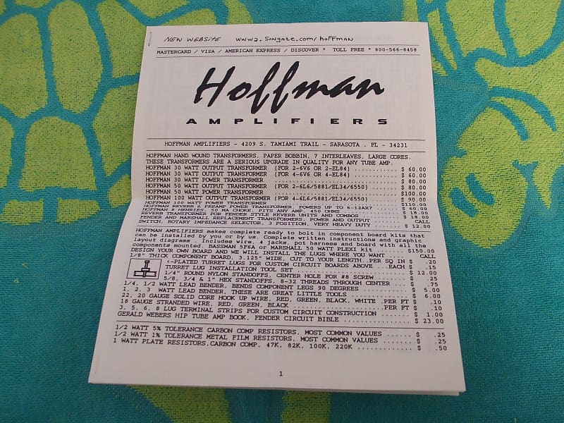 Hoffman amps catalog, tubes, transformers, switches, resistors