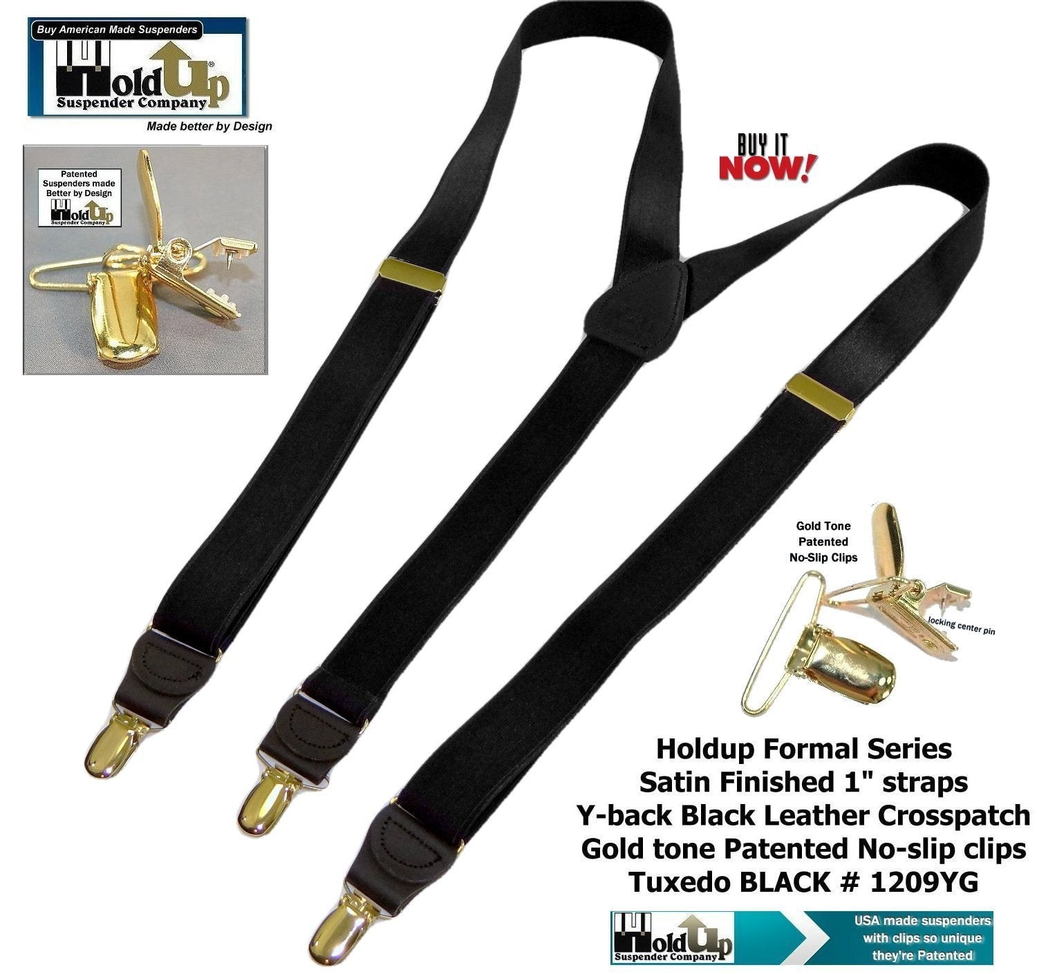 Holdup Brand Black Formal Series 1" Satin Finished Suspenders in Yback