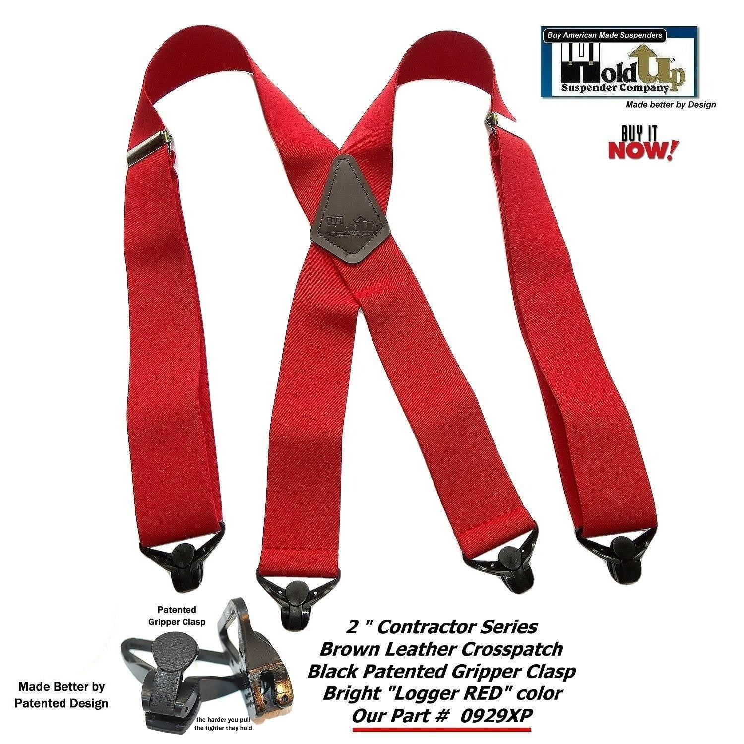 Holdup Heavy Duty Logger RED 2" Wide Xback Work Suspenders with USA