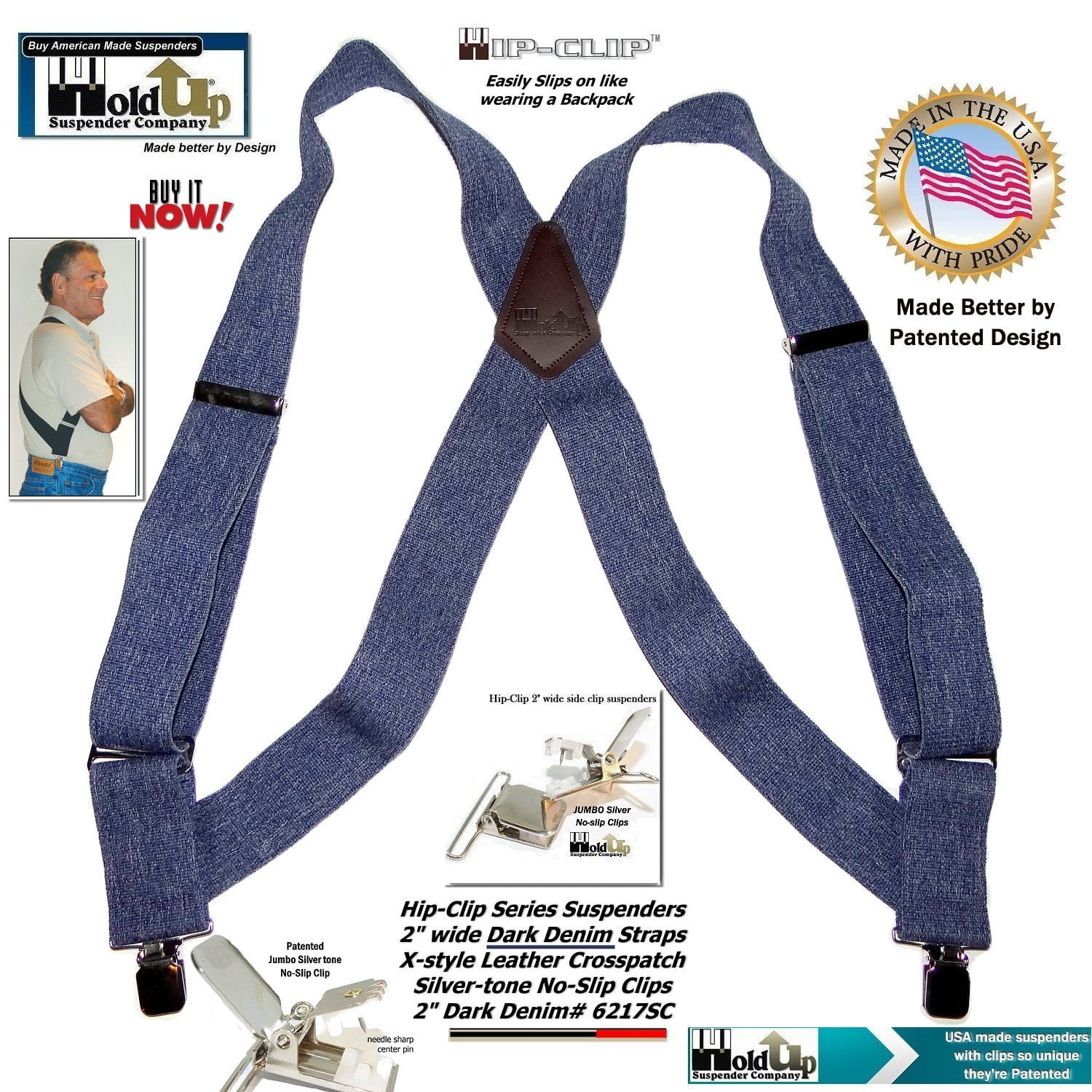 HoldUp Brand Dark Denim Trucker Style Hipclip Suspenders with Patented
