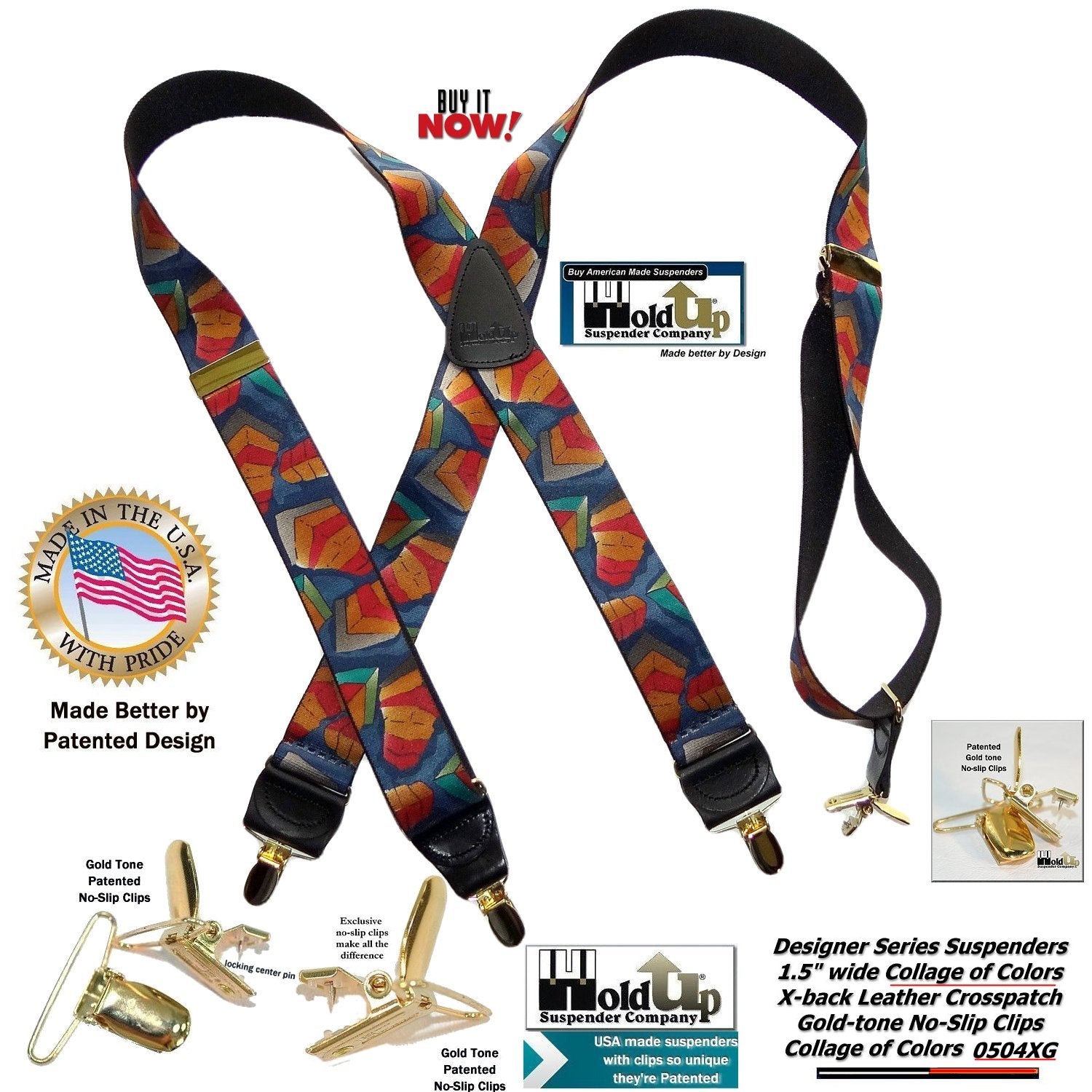 Holdup Collage of Colors Pattern Xback Suspenders and Patented Noslip