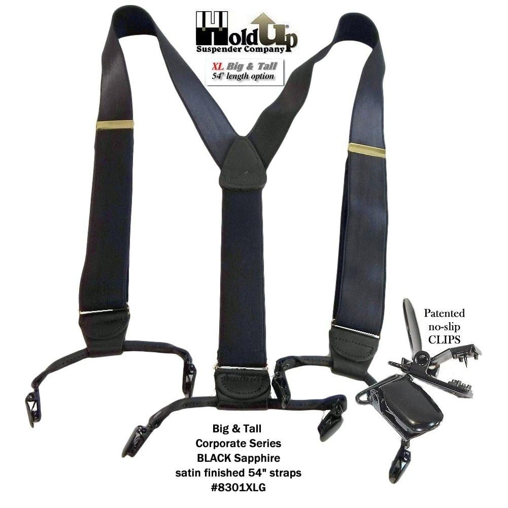 HoldUp Big and Tall XL Black 2" Suspenders with Gripper Clasps Holdup