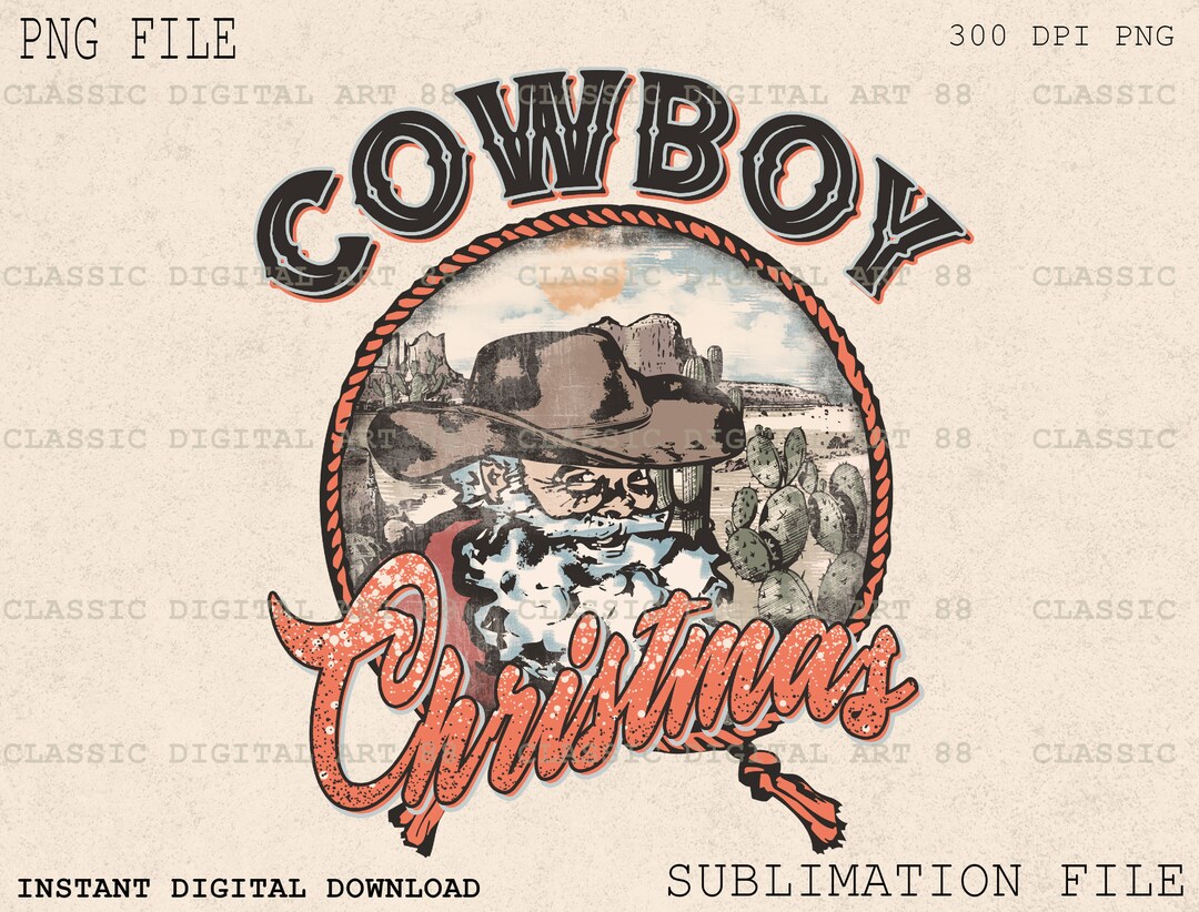 Cowboy Christmas PNG, Happy Holidays PNG, Christmas Png, Winter Design