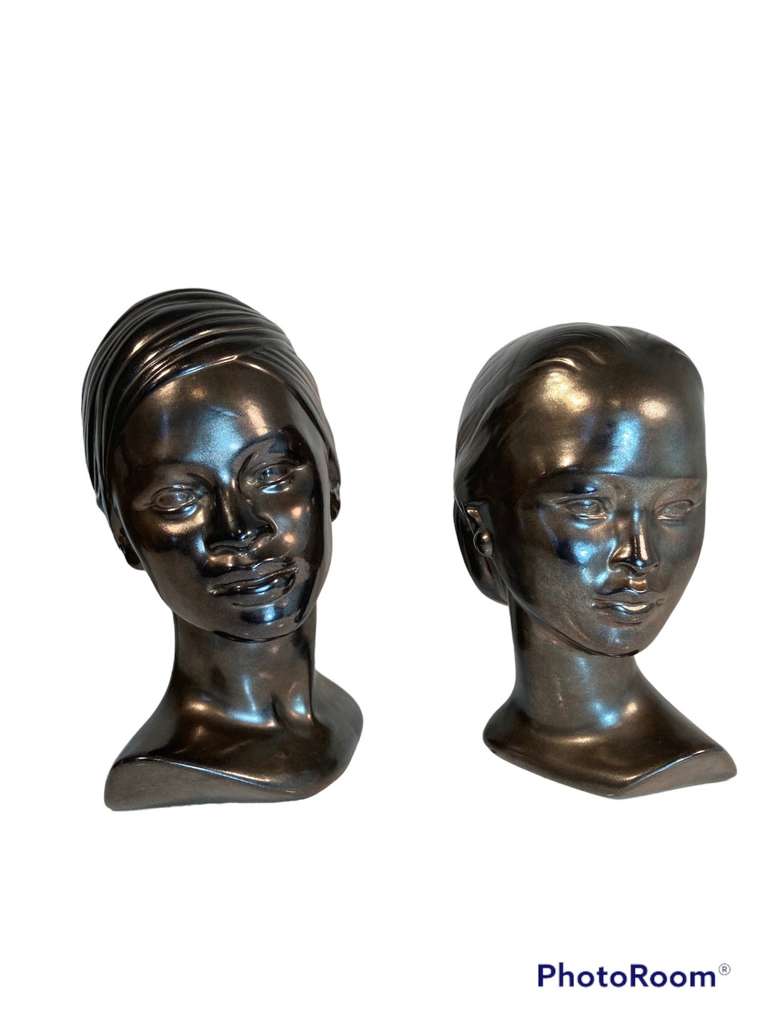 Vintage Mid Century Holland Mold Ceramic Busts Polynesian Man and Woman