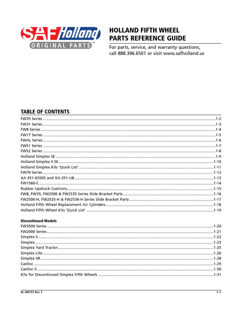 Holland Fifth Wheel Parts Reference Guide PDF