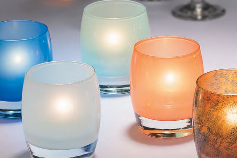 Hollowick Contour Satin Seafoam Glass Votive Lamp, 3 3/4 x 3 x 3 inch.