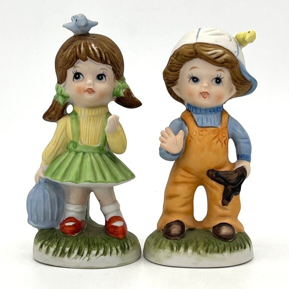 Homco Art Vintage Homco Porcelain Figurines Boy Girl Set With Birds