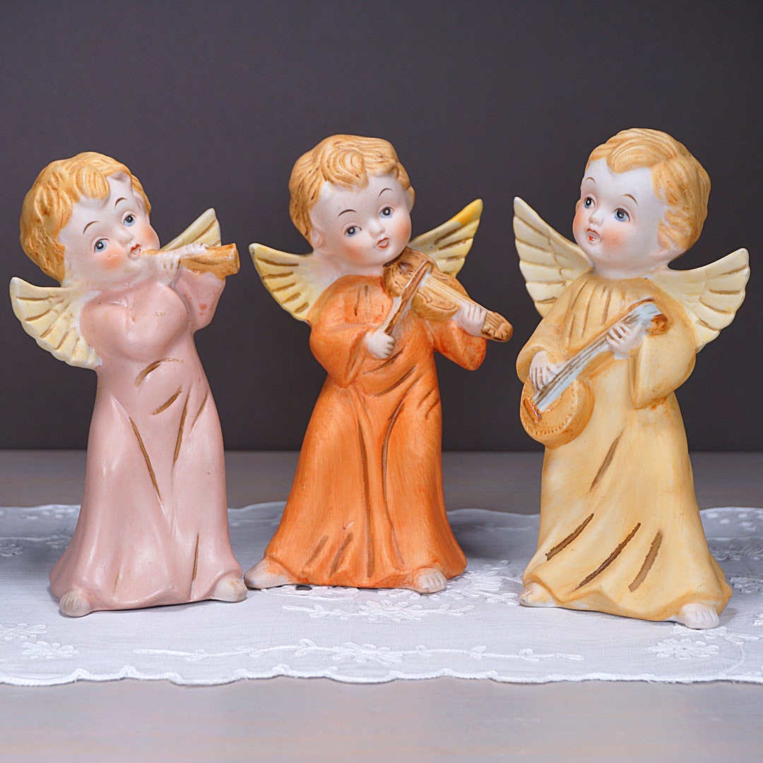 Vintage Homco Angels, Set/three (3) Ceramic Musical Figurines, Shelf