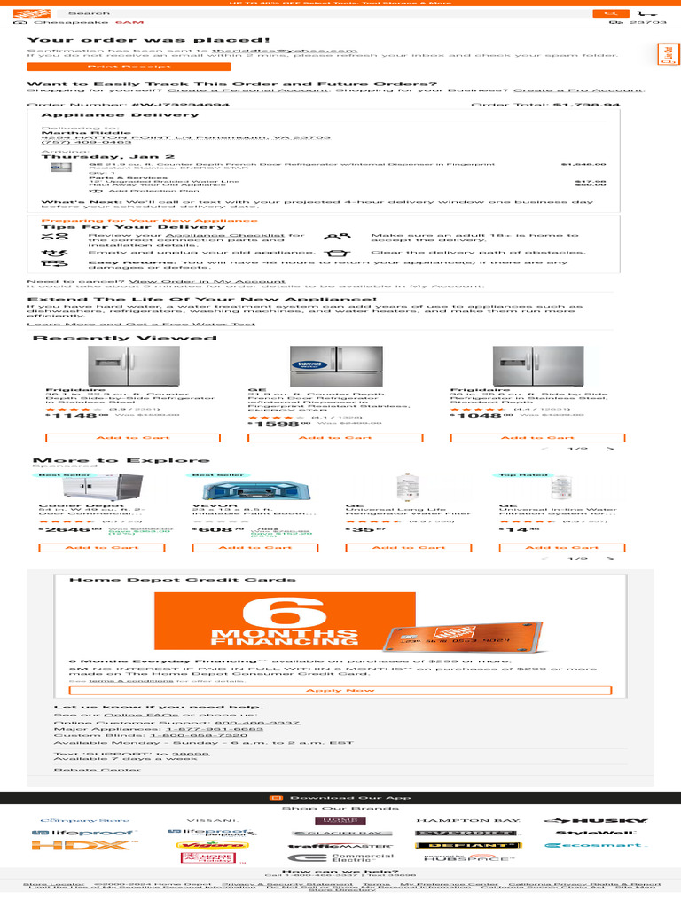 The Home Depot Order Confirmation PDF Home Appliance Refrigerator