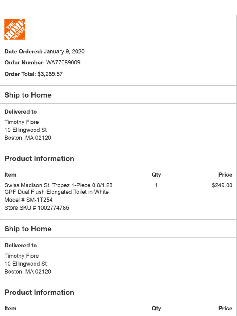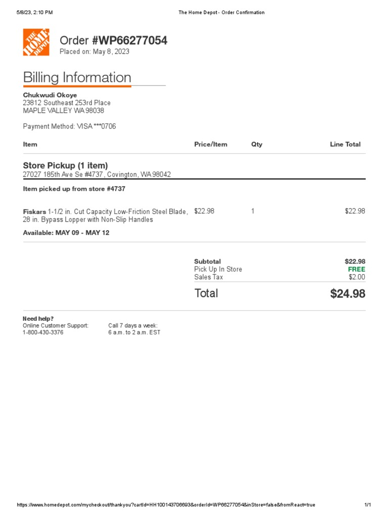 The Home Depot Order Confirmation 2 PDF The Home Depot Point Of