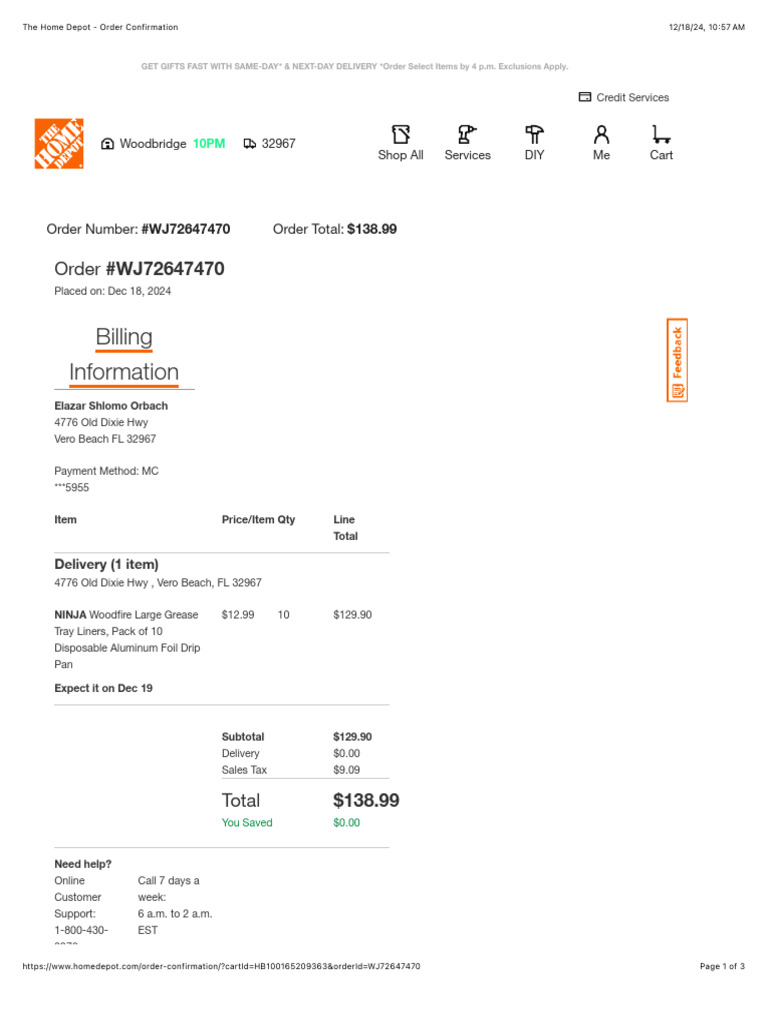 The Home Depot Order Confirmation PDF