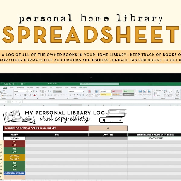 Personal Library Spreadsheet Tracker, Excel Book Organizer, Reading Log
