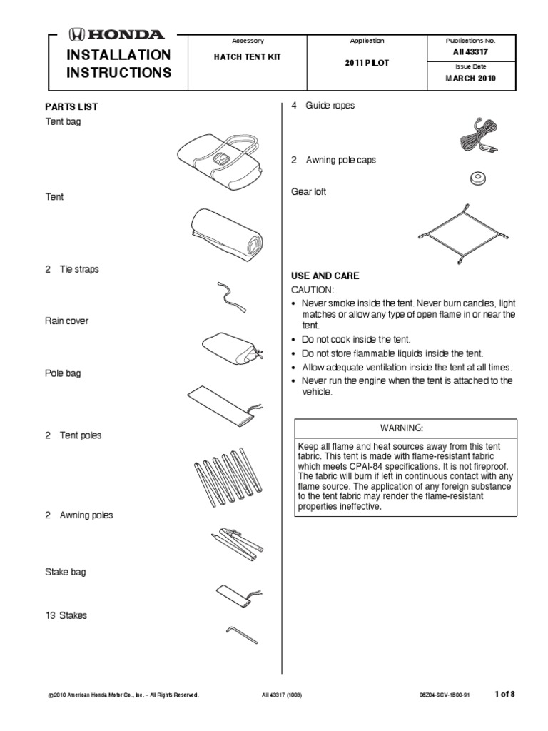 Honda Pilot 2011 Hatch Installation PDF Trunk (Car) Tent