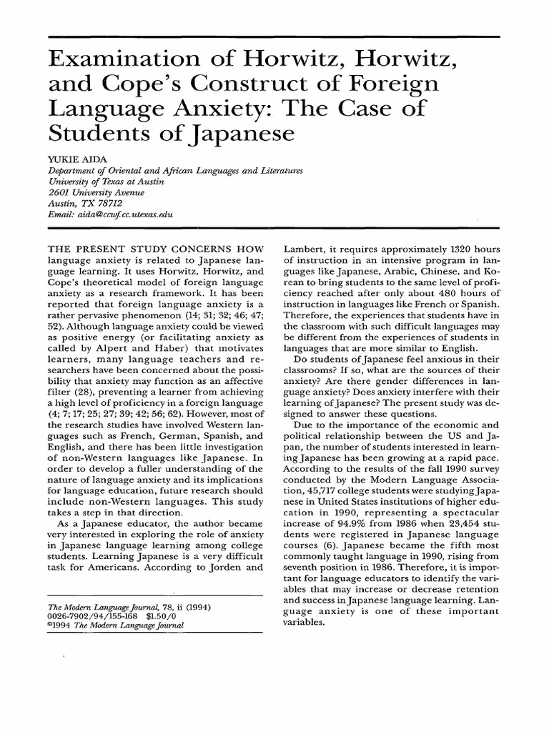 Examination of Horwitz Horwitz and Copes PDF Anxiety Fear