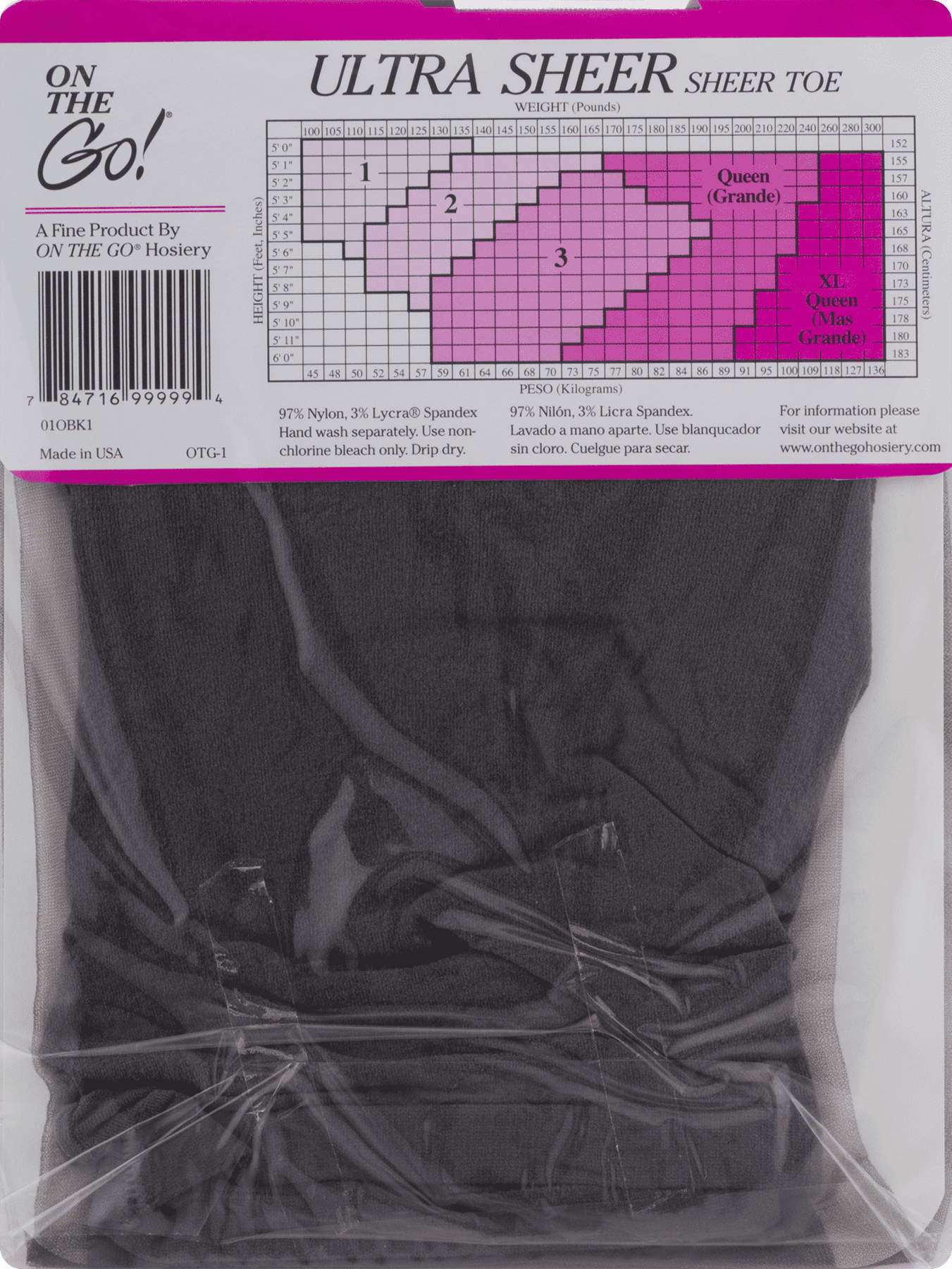 ON THE GO Hosiery Ultra Sheer Hosiery Assorted Colors and Sizes