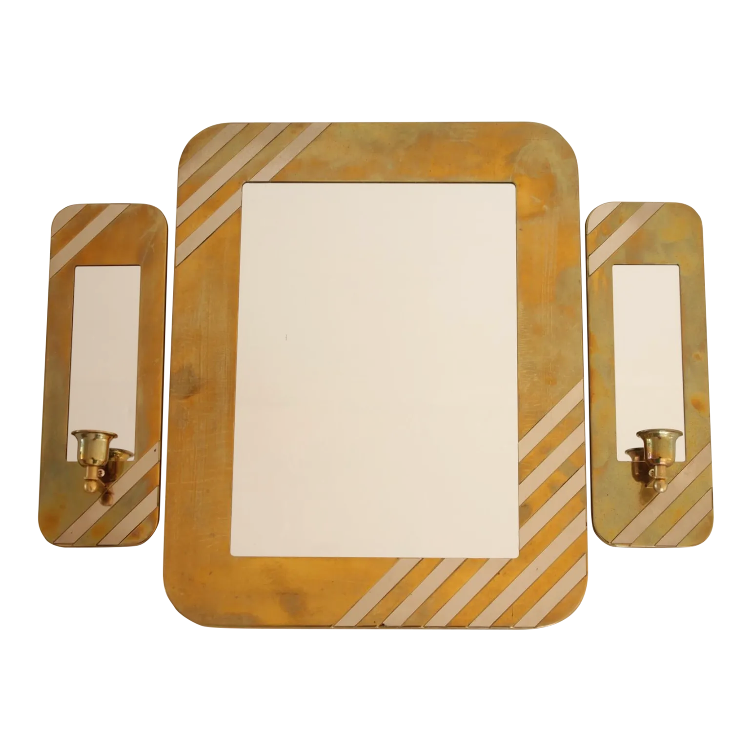 Set of 3 1980s House of Lloyd Brass & Chrome MidCentury Modern Mirrors