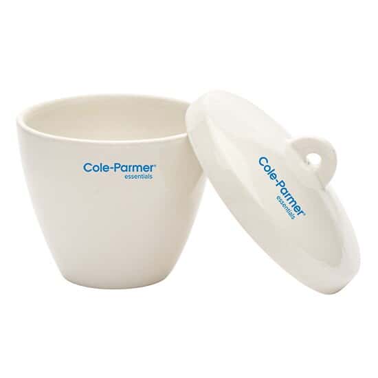 ColeParmer Essentials HighForm Crucible with Cover, Porcelain, 120 mL