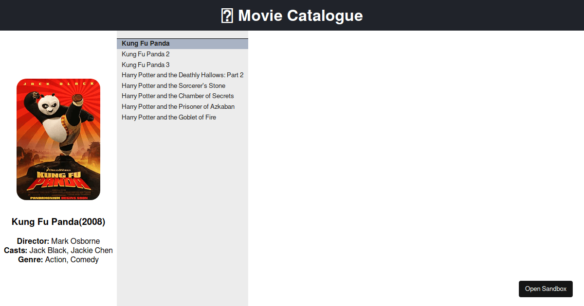 Movie catalogue Codesandbox