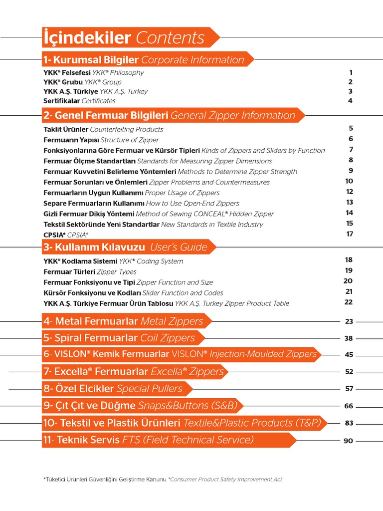 Sliders Catalogue YKK Zippers YKK Japan ©2014 Page 1