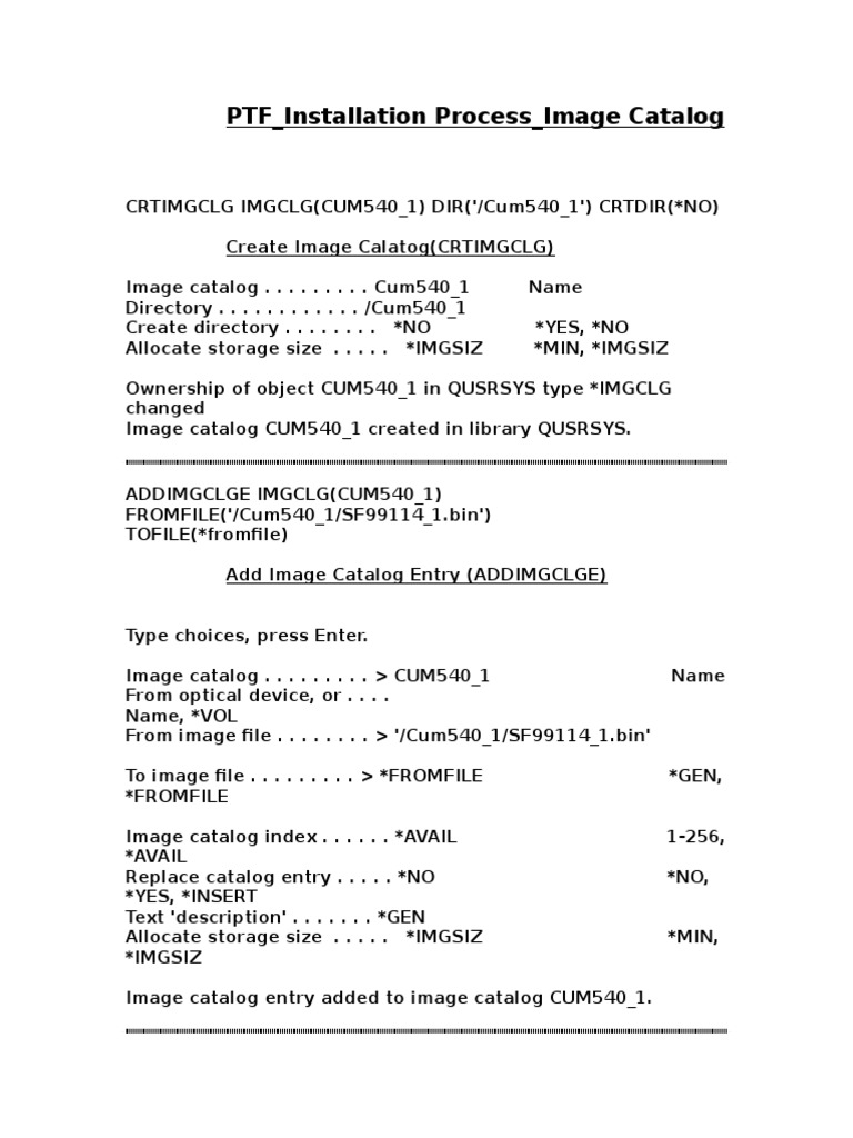 PTF Installation Process Image Catalog PDF Computer Data