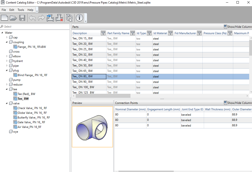 AutoCAD Civil 3D Tip PVC, HDPE and Steel pressure pipe parts catalogs