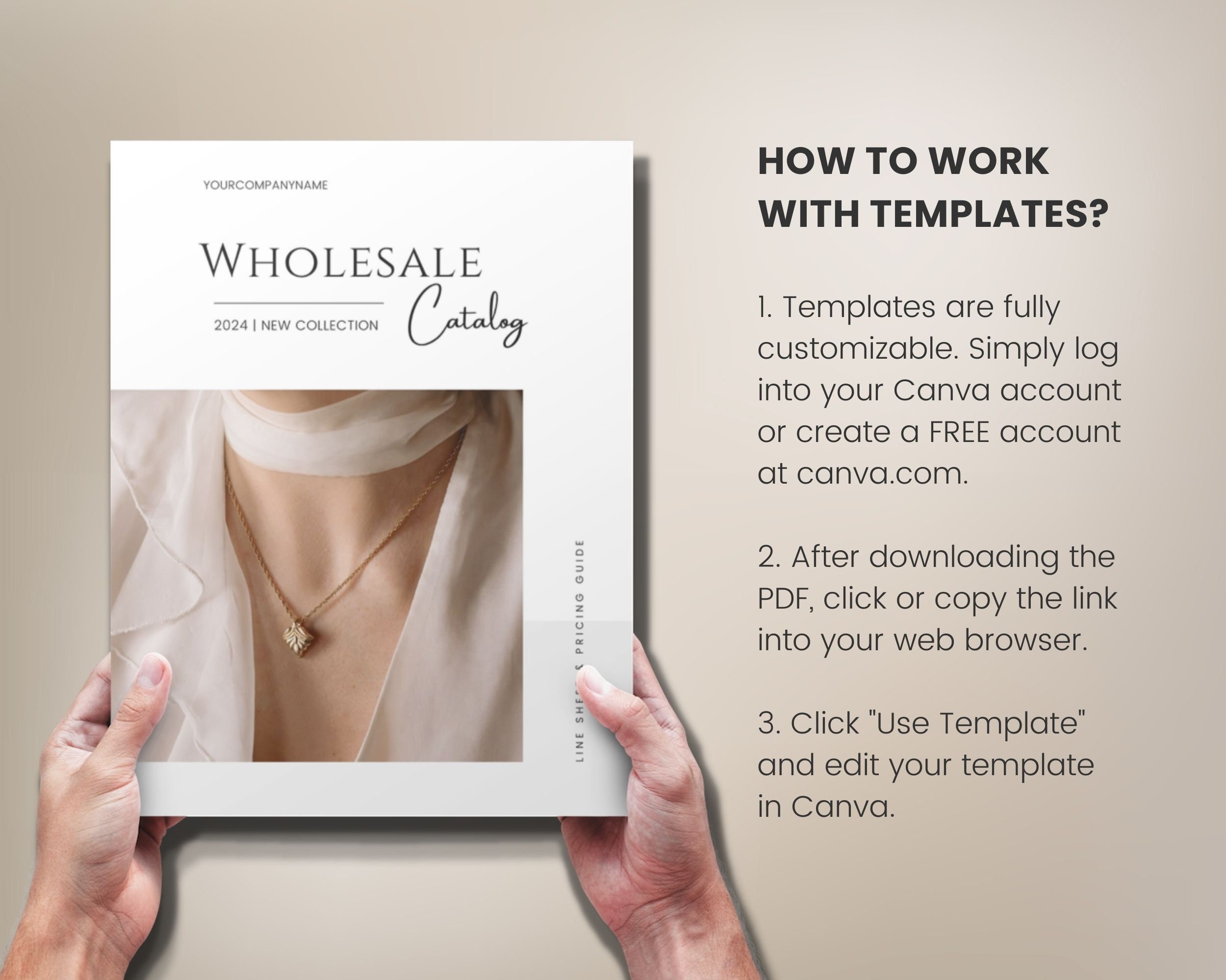 Jewelry Line Sheet Wholesale Product Catalog Template CANVA Editable