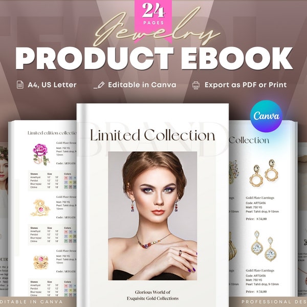 Jewelry Catalog Template, Fully Editable in Canva Ebook Magazine
