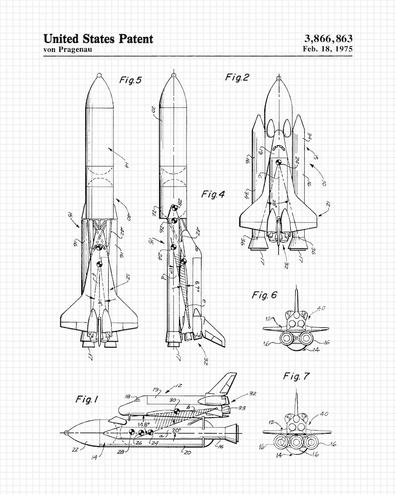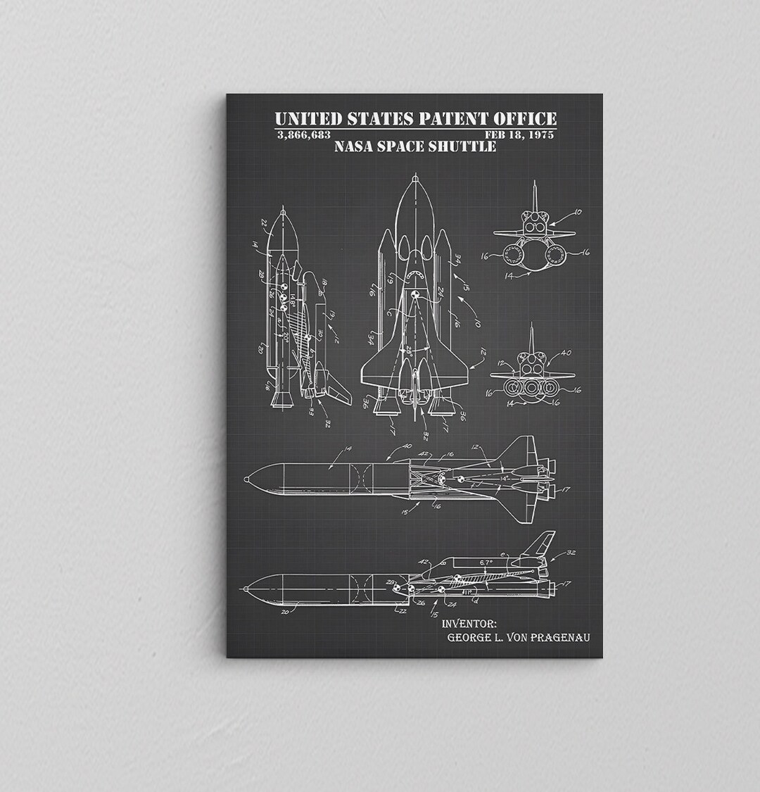 Nasa Patent 1975 Space Shuttle Print Canvas / Nasa Space Shuttle Poster