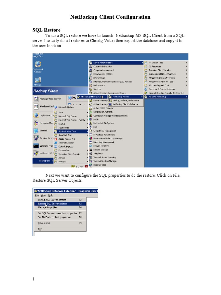 Netbackup Client Configuration SQL Restore PDF Backup Databases