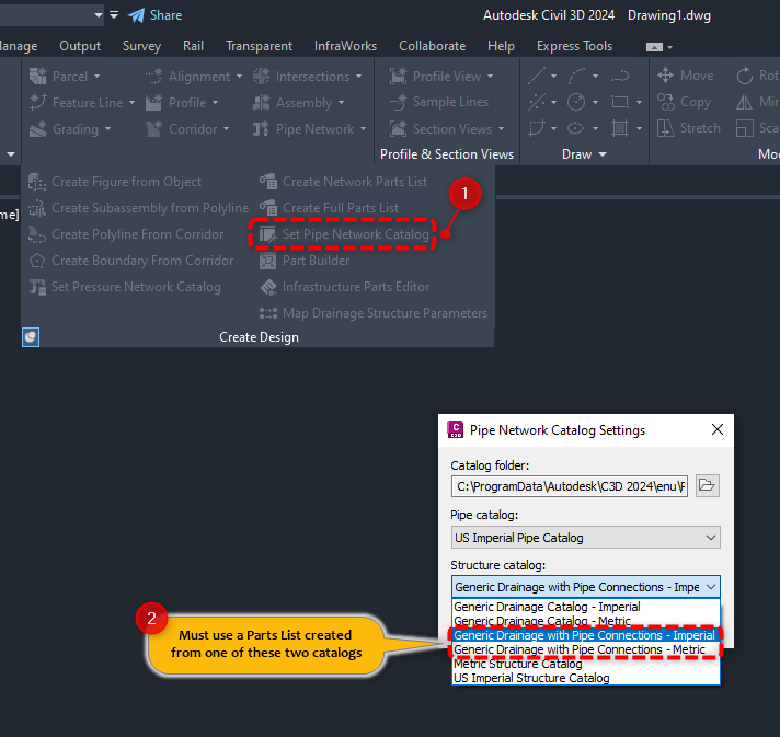 Pipe Network catalog for Civil 3D 2020 Installation and First Use