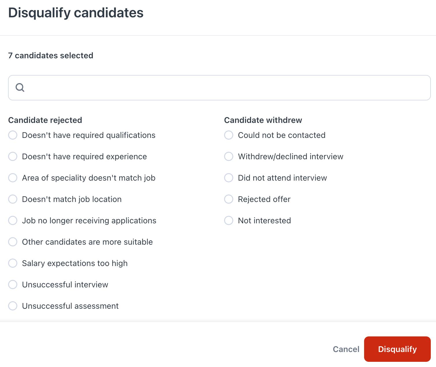 Disqualification reasons overview Workable Help