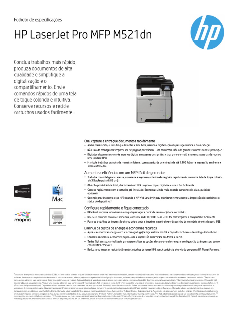 HP Laserjet Pro MFP M521Dn Folheto de Especificações PDF