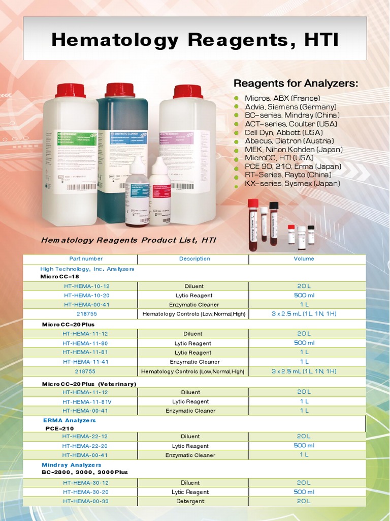 HTI Hematology Reagents Catalog 2019 International PDF Business