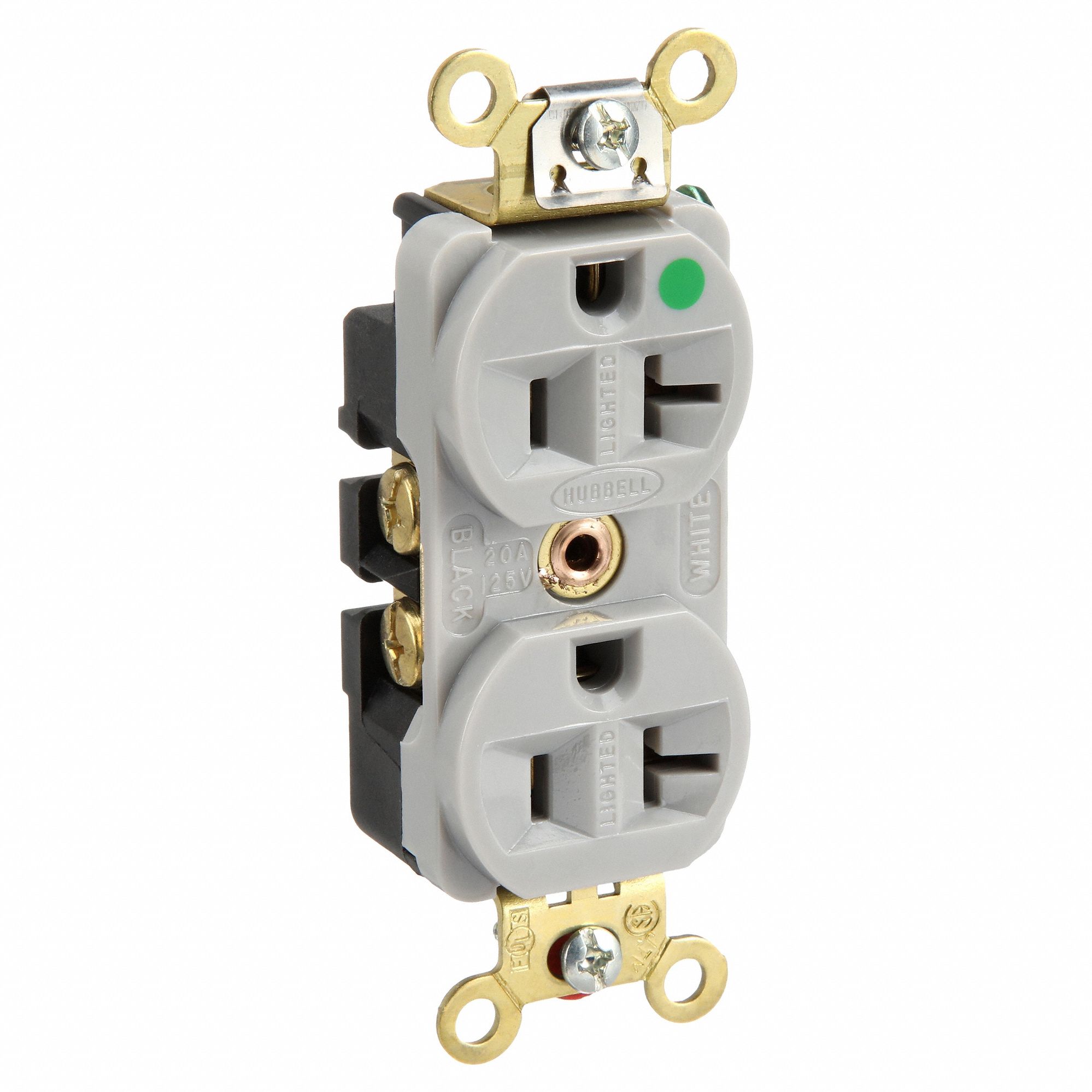 HUBBELL, Duplex, 520R, Receptacle 2LBX7HBL8300ILGY Grainger