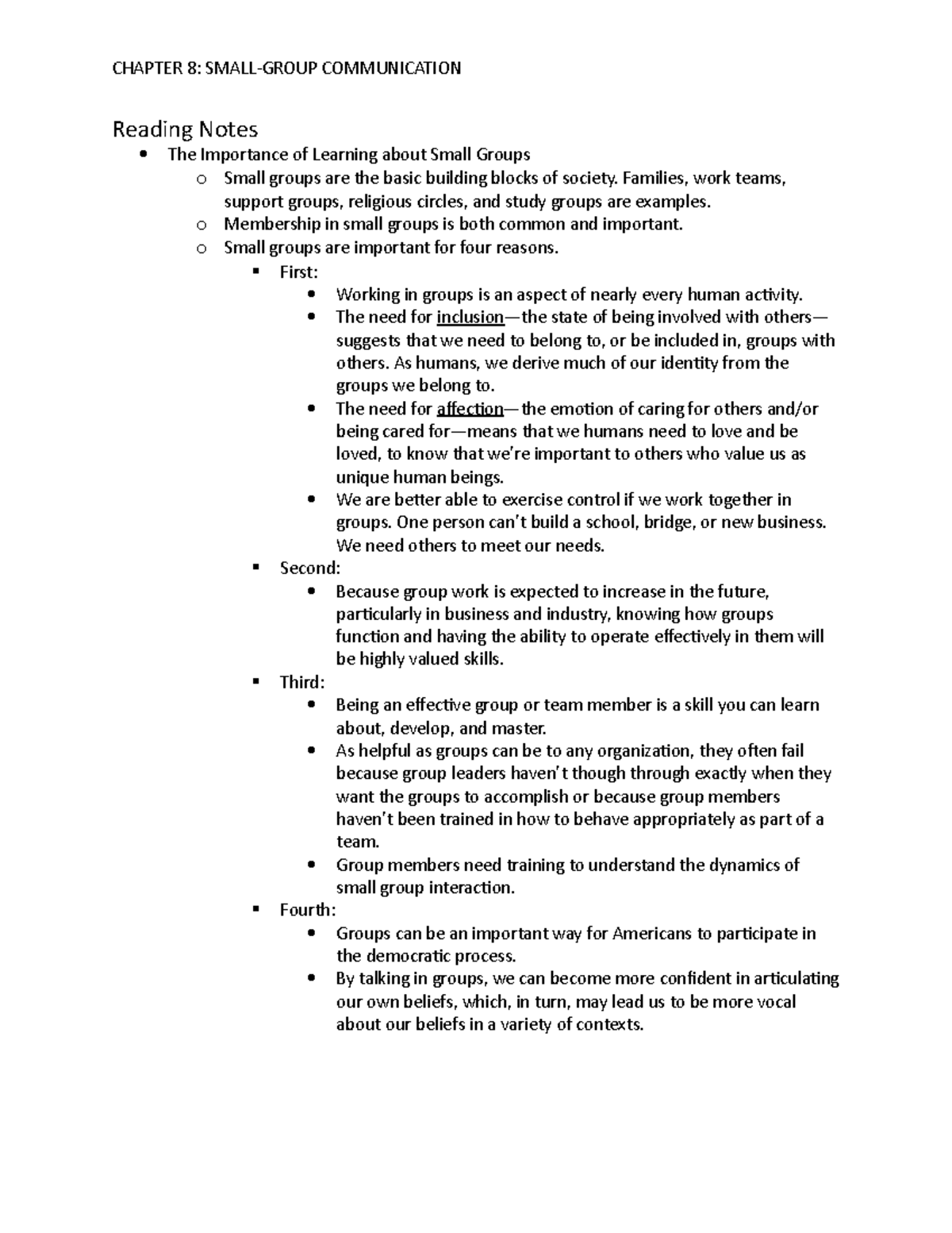 Chapter 8 Textbook Human Communication 6th Edition, UCF Edition