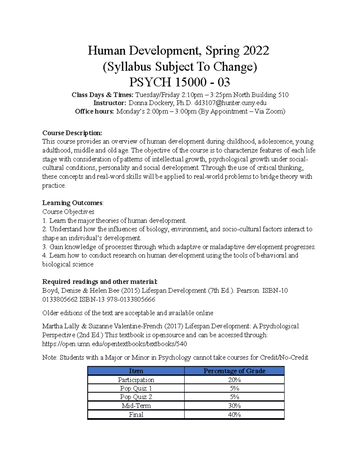 Human Development Syllabus Spring 2022 Human Development, Spring 2022