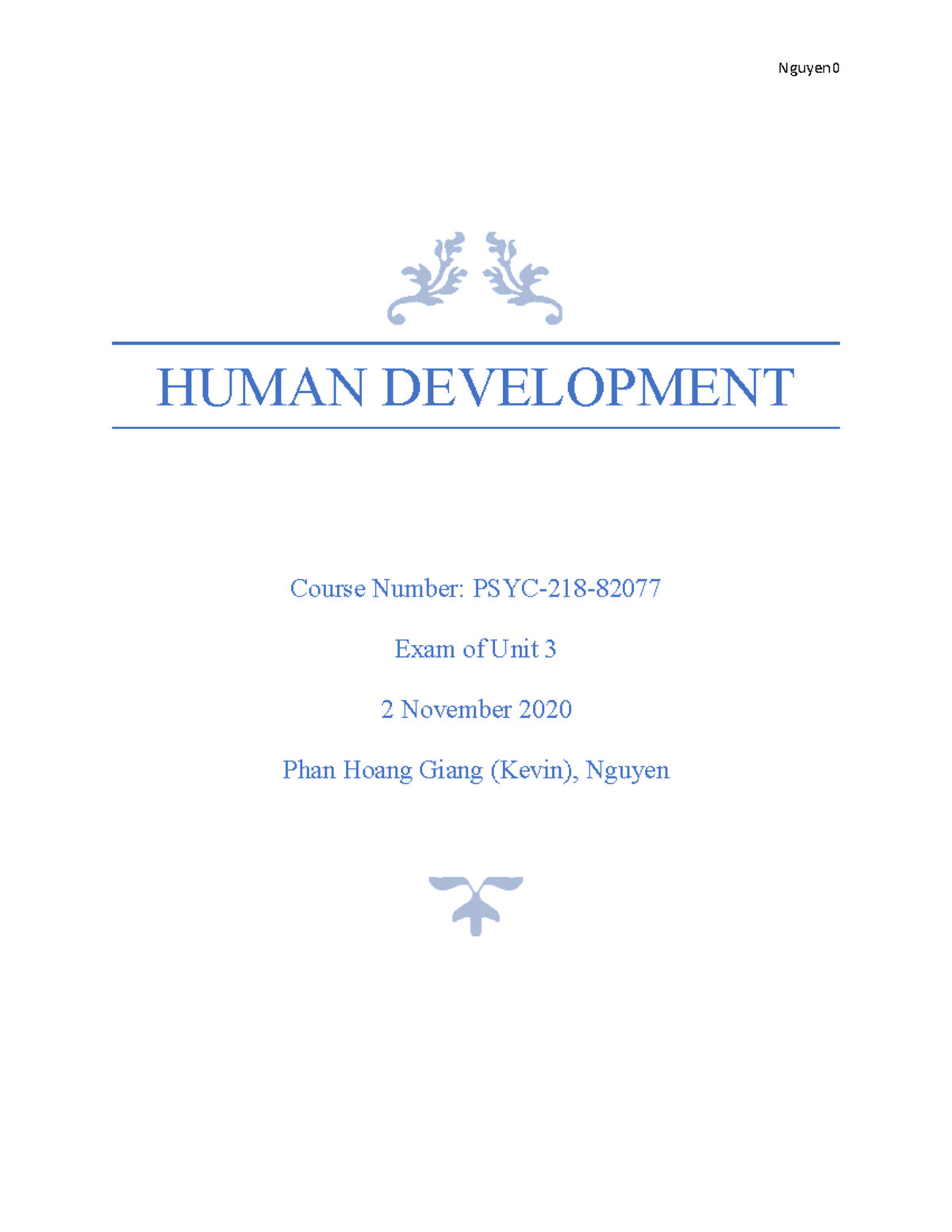 Giang direct A3 HUMAN DEVELOPMENT Course Number PSYC218 Exam of