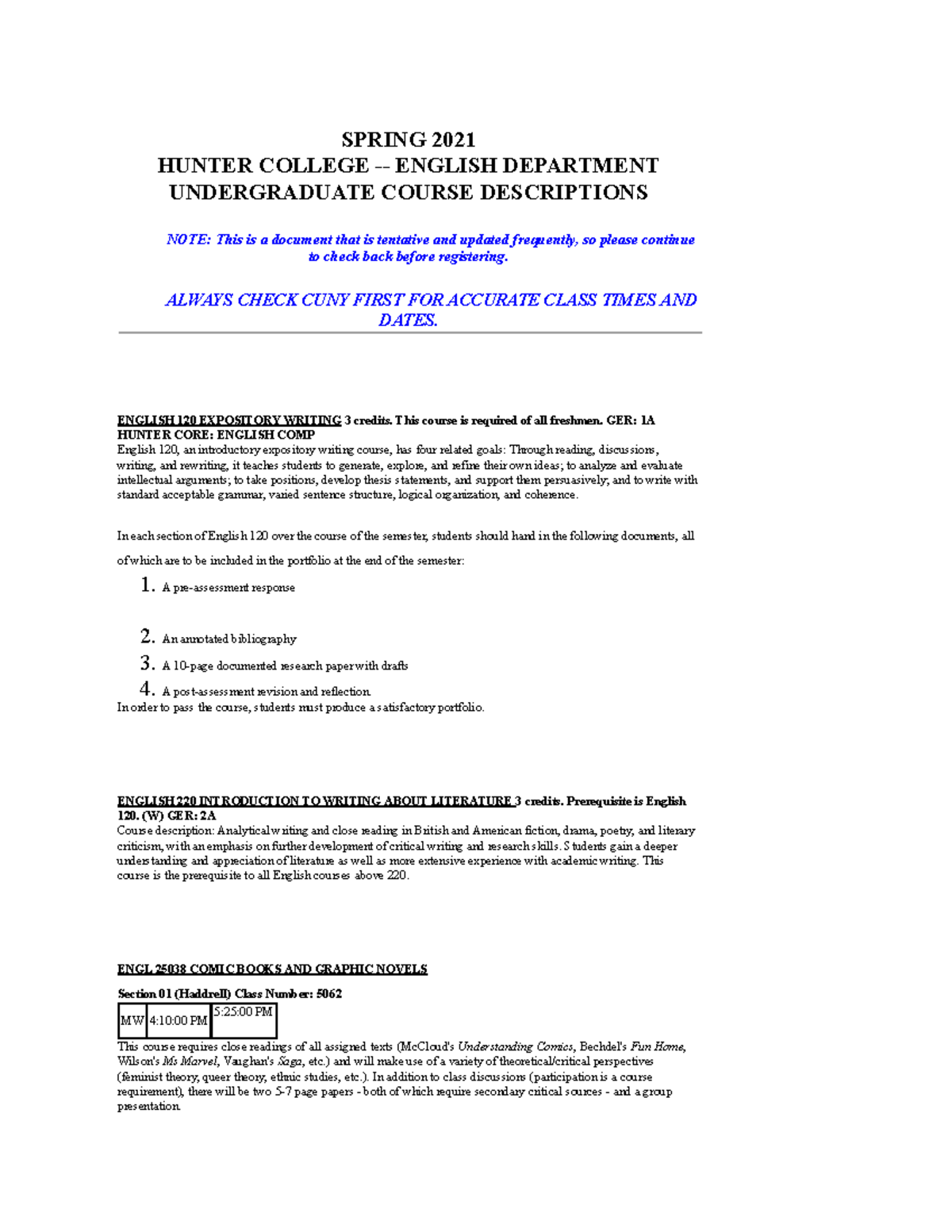 Untitled English SPRING 2021 HUNTER COLLEGE ENGLISH DEPARTMENT