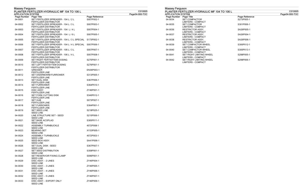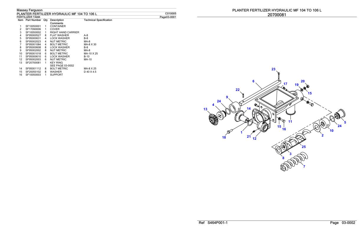 Massey Ferguson MF 104 to 106 L Planter Fertilizer Hydraulic Parts