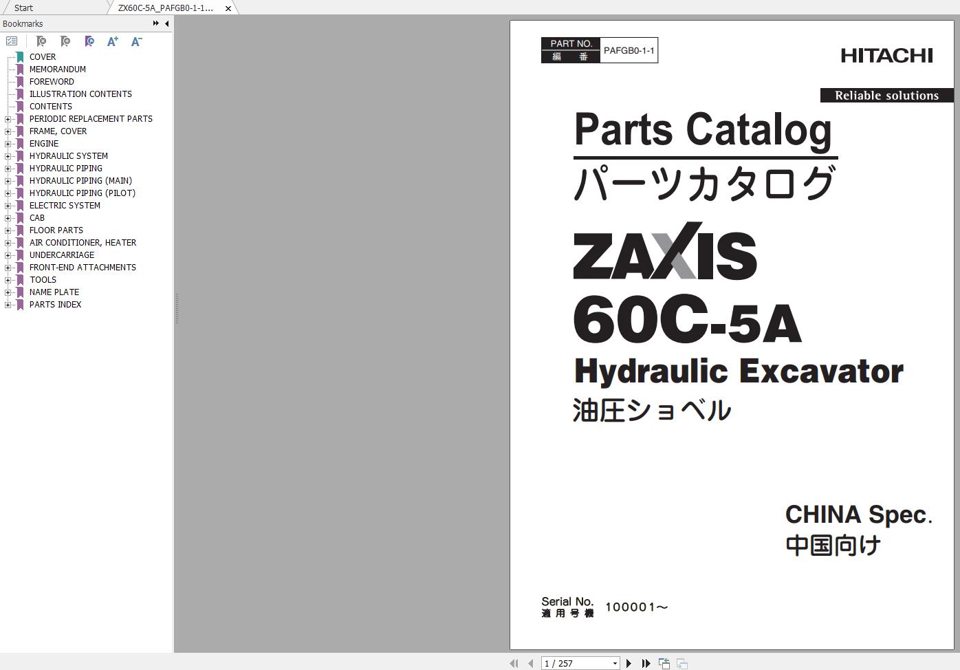 Hitachi Hydraulic Excavator ZX60C5A Parts Catalog PAFGB011 EN+JP