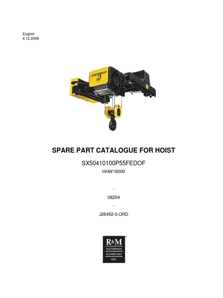 Spare Part Catalogue For Hoist SX50410100P55FEDOF PDF Equipment