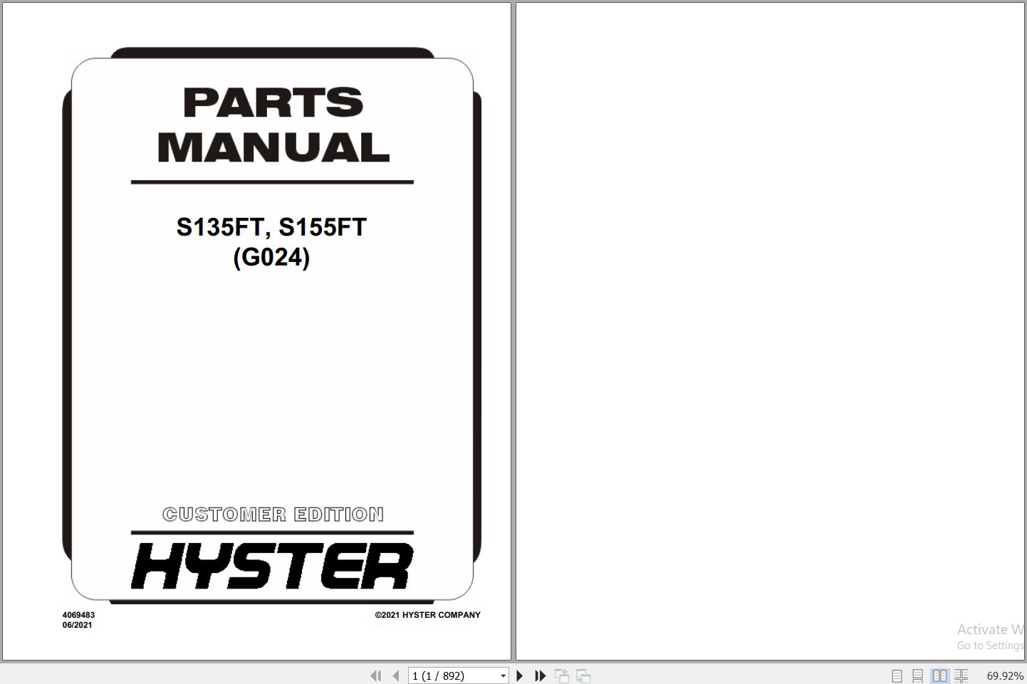 Hyster S135FT S155FT G024 Forklift Parts Catalog 4069483 2021 PDF