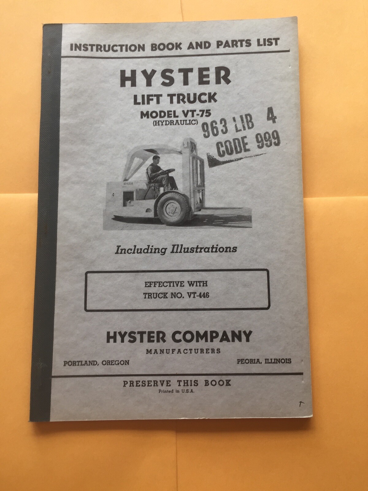 HYSTER EQUIPMENT SERVICE AND REPAIR OWNER, PARTS CATALOGUE MANUAL by