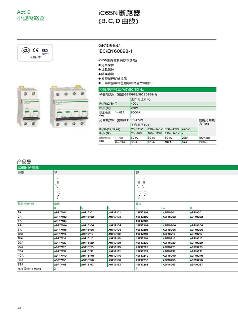 Schneider IC65N/A9F18232 EN 608981 Miniature Circuit Breakers abb