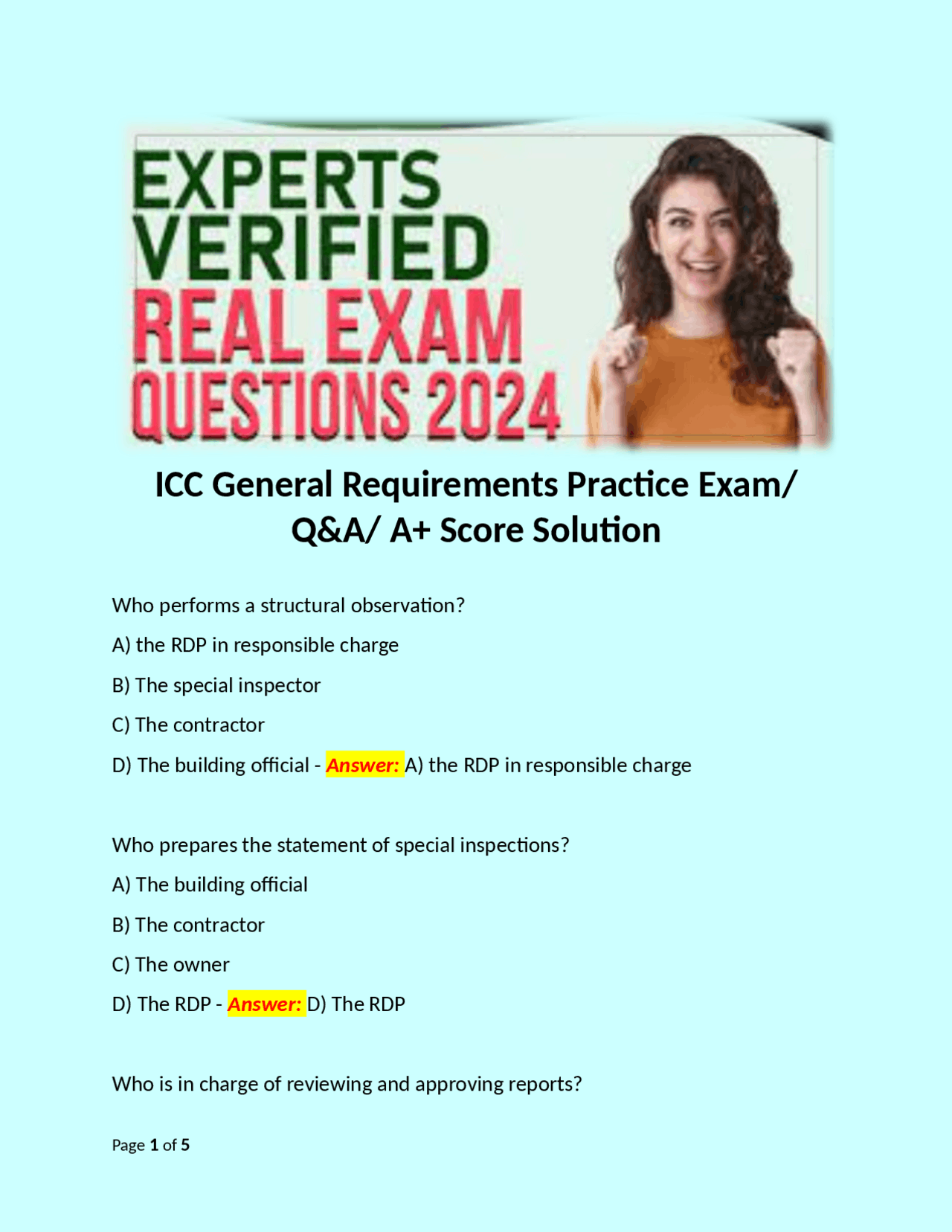 ICC SAMPLE EXAM QUESTIONS WITH COMPLETE ANSWERS ICC Stuvia US