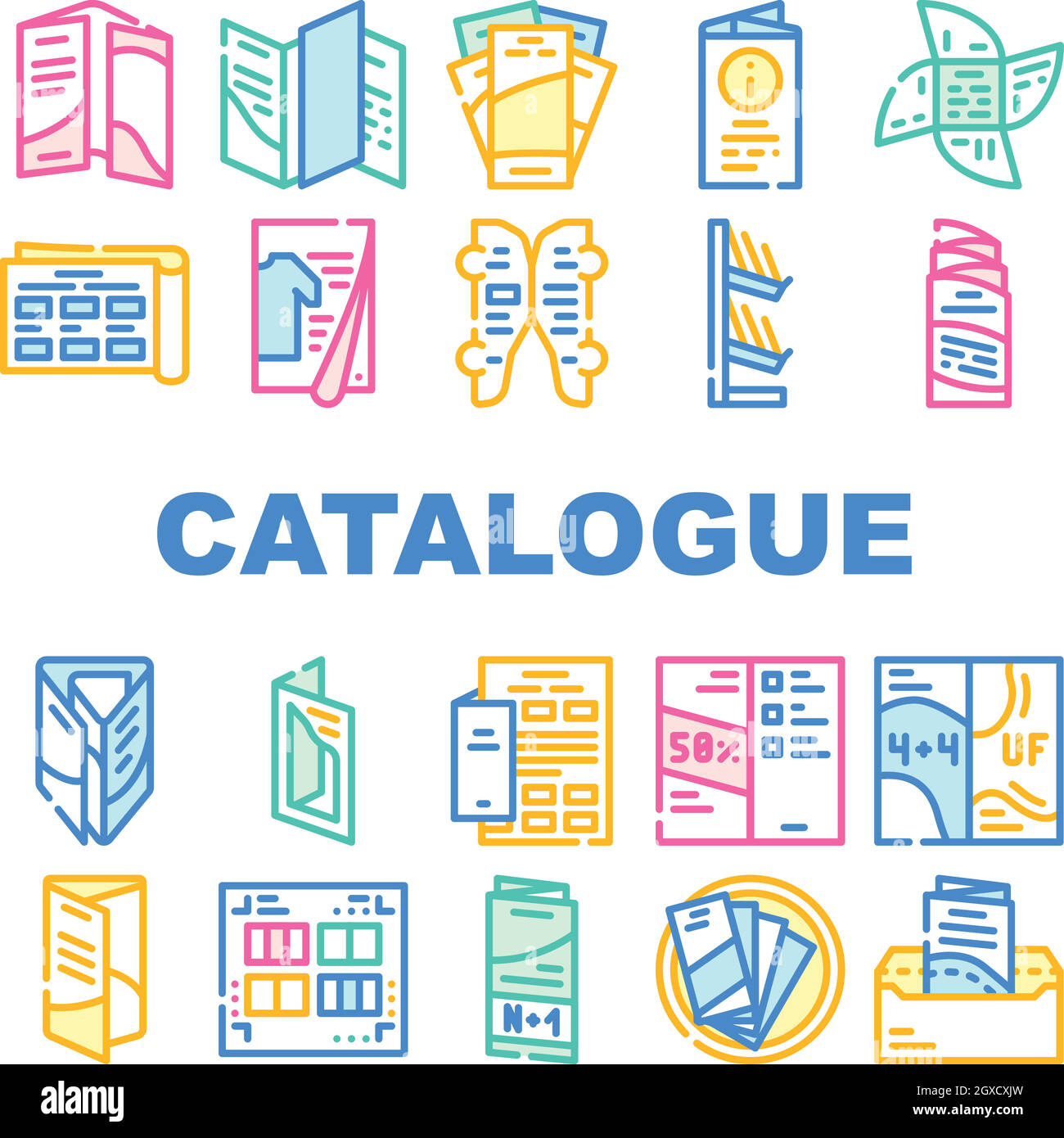 Catalog and Booklet Collection Icons Set Vector Stock Vector