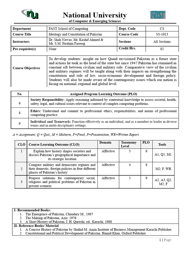 ICP Course Outline Spring 2024 PDF Pakistan Pakistan Movement